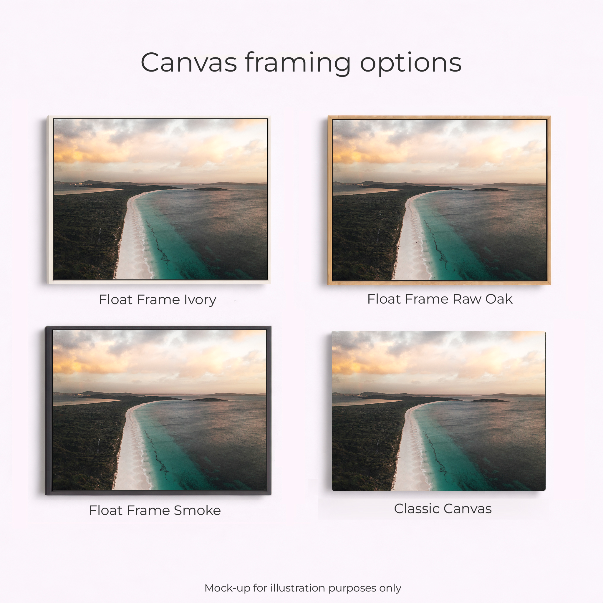 Acrylic Print, Canvas – Classic, Canvas – Float Framed – Raw Oak Colour, Canvas – Float Framed – Smoke Colour, Framed – Printing and Framing with Matboard, Paper Print – Cotton Rag, Paper Print – Matte Archival, Paper Print – Semi Gloss Luster