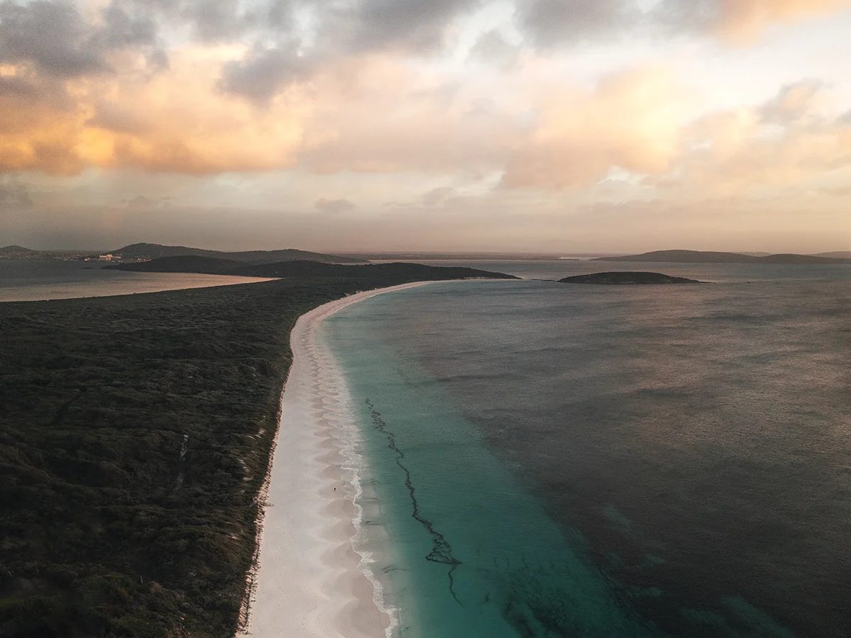 Goode Beach is one of Albany’s best “quiet but ridiculously pretty” swims. With soft sand, clear blue-green water, and a tucked-away feel. It sits on the Vancouver Peninsula with sheltered views across the Sound and out toward Mount Manypeaks. It’s the kind of beach where the water stays inviting even when the wider coast looks a bit wild.