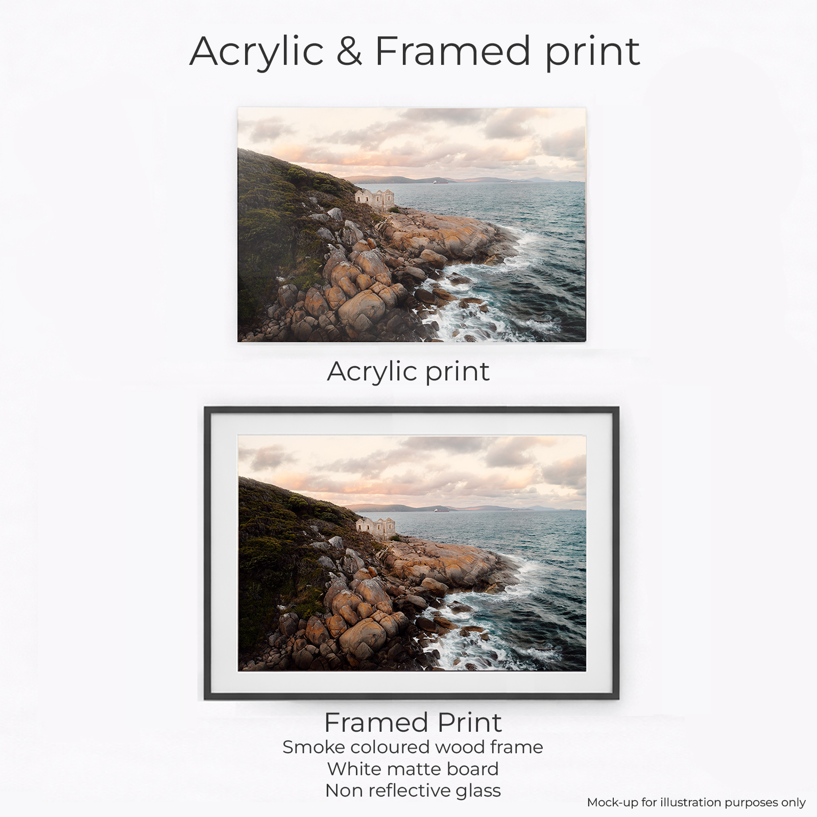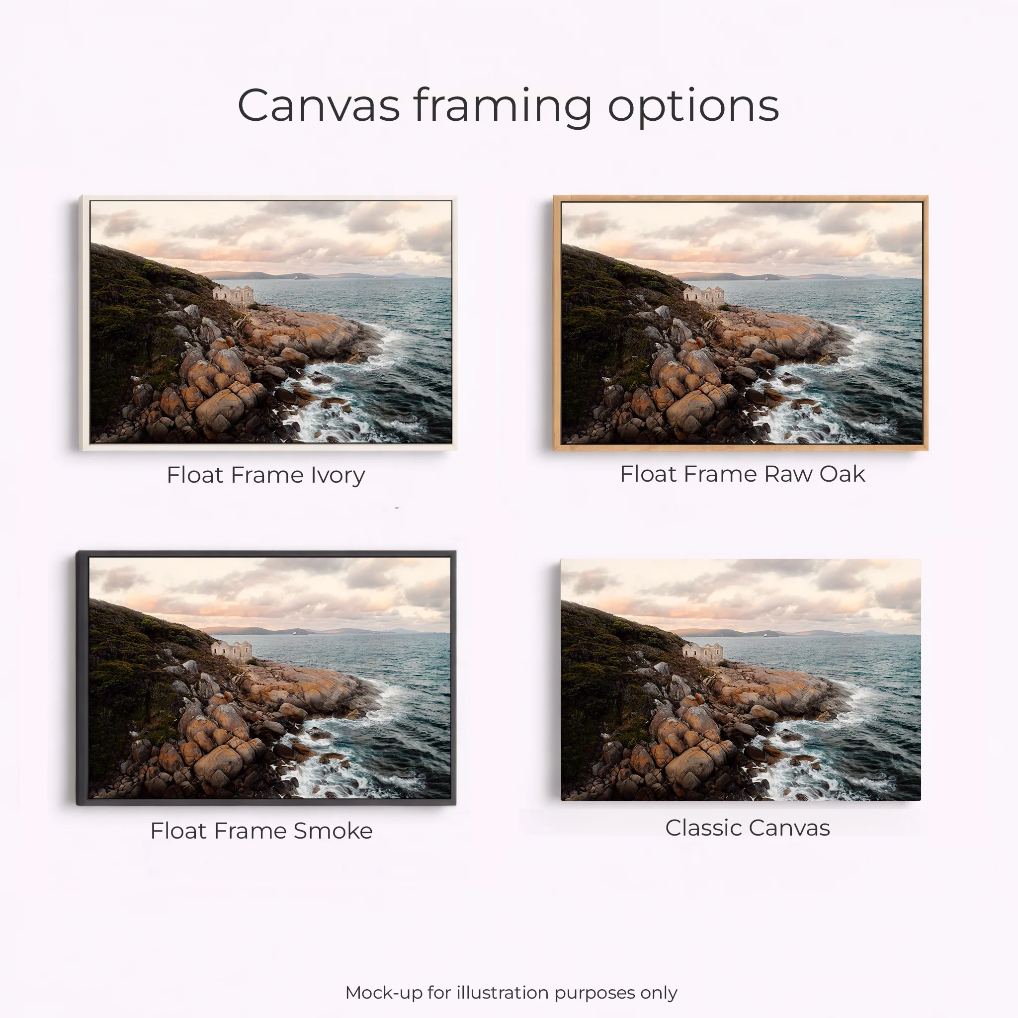 Acrylic Print, Canvas – Classic, Canvas – Float Framed – Raw Oak Colour, Canvas – Float Framed – Smoke Colour, Framed – Printing and Framing with Matboard, Paper Print – Cotton Rag, Paper Print – Matte Archival, Paper Print – Semi Gloss Luster