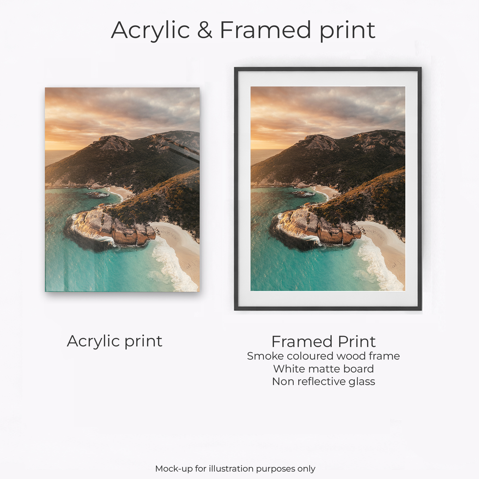 Acrylic Print, Canvas – Classic, Canvas – Float Framed – Raw Oak Colour, Canvas – Float Framed – Smoke Colour, Framed – Printing and Framing with Matboard, Paper Print – Cotton Rag, Paper Print – Matte Archival, Paper Print – Semi Gloss Luster