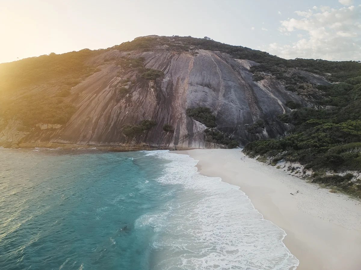 Misery Beach is one of those Albany spots where the name doesn’t match the scene. It’s a small, sheltered pocket of bright white sand and clear turquoise water, hemmed in by smooth granite walls that make it feel calm and tucked away compared to the wilder open-coast beaches nearby. It sits inside Torndirrup National Park, about 20 km south of Albany, and it’s easy to access by car with a short walk down to the sand.