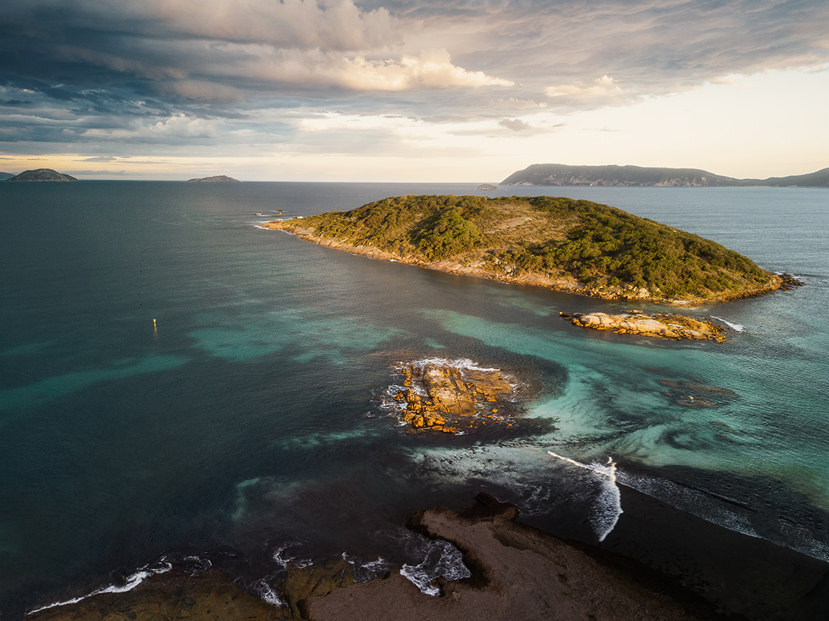Just off the north end of Goode Beach in Albany, Mistaken Island sits close to shore in King George Sound—only about 120 metres off the Vancouver Peninsula. From the sand you get that classic Albany palette: pale beach, clear blue-green water, and rounded granite shelves and boulders along the edge. At very low tide, people sometimes wade or rock-hop across from Goode Beach (conditions matter—swell and slippery rocks can make it unsafe), otherwise it’s a short paddle. The island itself is a Nature Reserve and is known for little penguins. Its name comes from penguin burrows being mistaken for rabbit holes.
