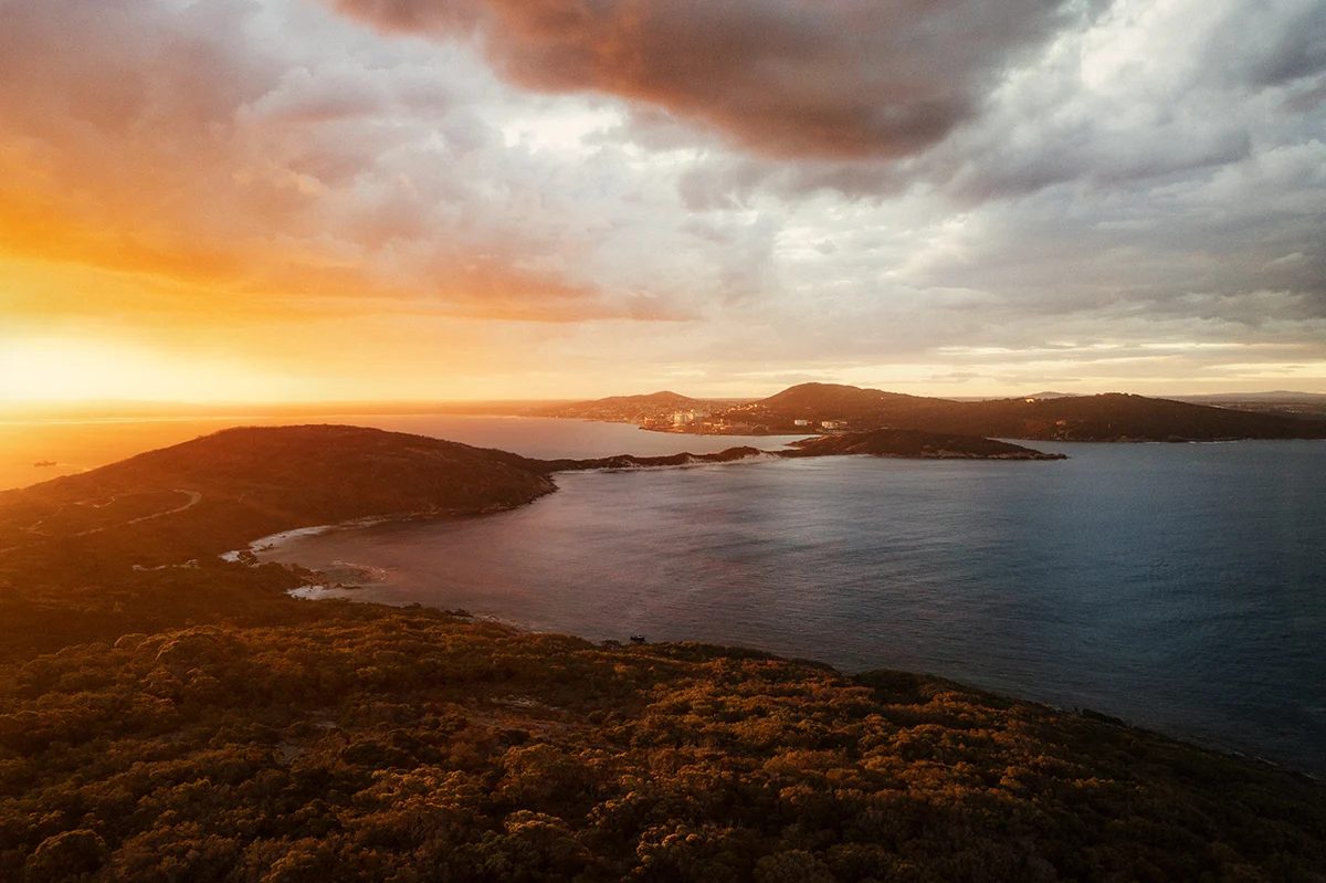 A fiery sunset over the Vancouver Peninsula in Albany. This headland separates calmer bays from the Southern Ocean and is home to great walking trails, lookouts and beaches. On the peninsula’s north-facing side, Whalers Cove (also called Fisheries Beach) is one of the local favourites: a tucked-away cove with clear water, granite edges, and a more protected aspect that can feel noticeably calmer than the open coast on a windy day.