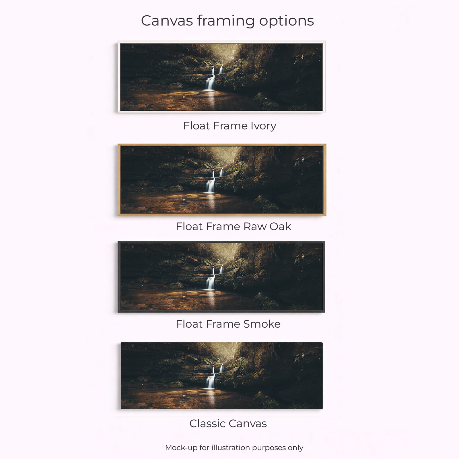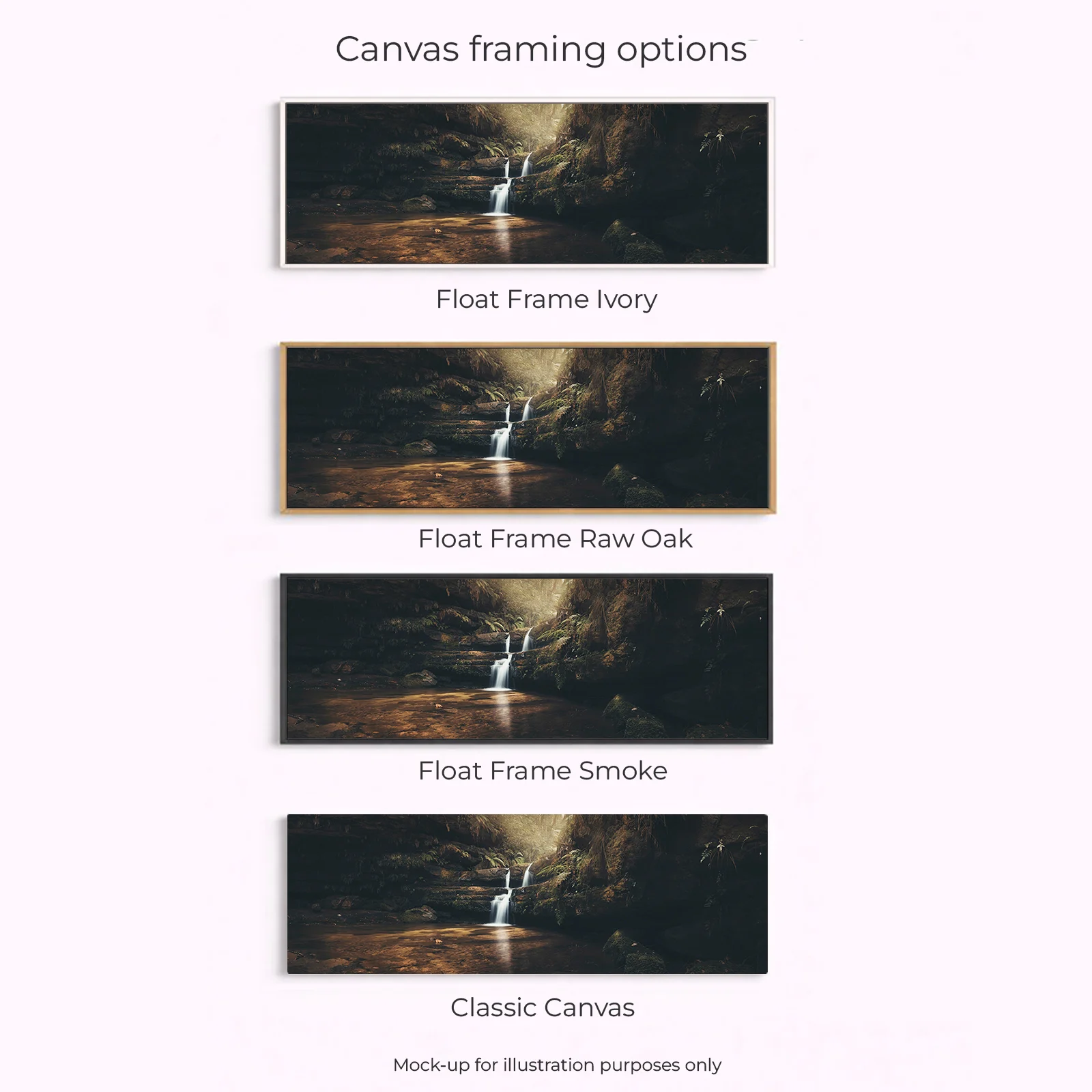 Acrylic Print, Canvas – Classic, Canvas – Float Framed – Raw Oak Colour, Canvas – Float Framed – Smoke Colour, Framed – Printing and Framing with Matboard, Paper Print – Cotton Rag, Paper Print – Matte Archival, Paper Print – Semi Gloss Luster