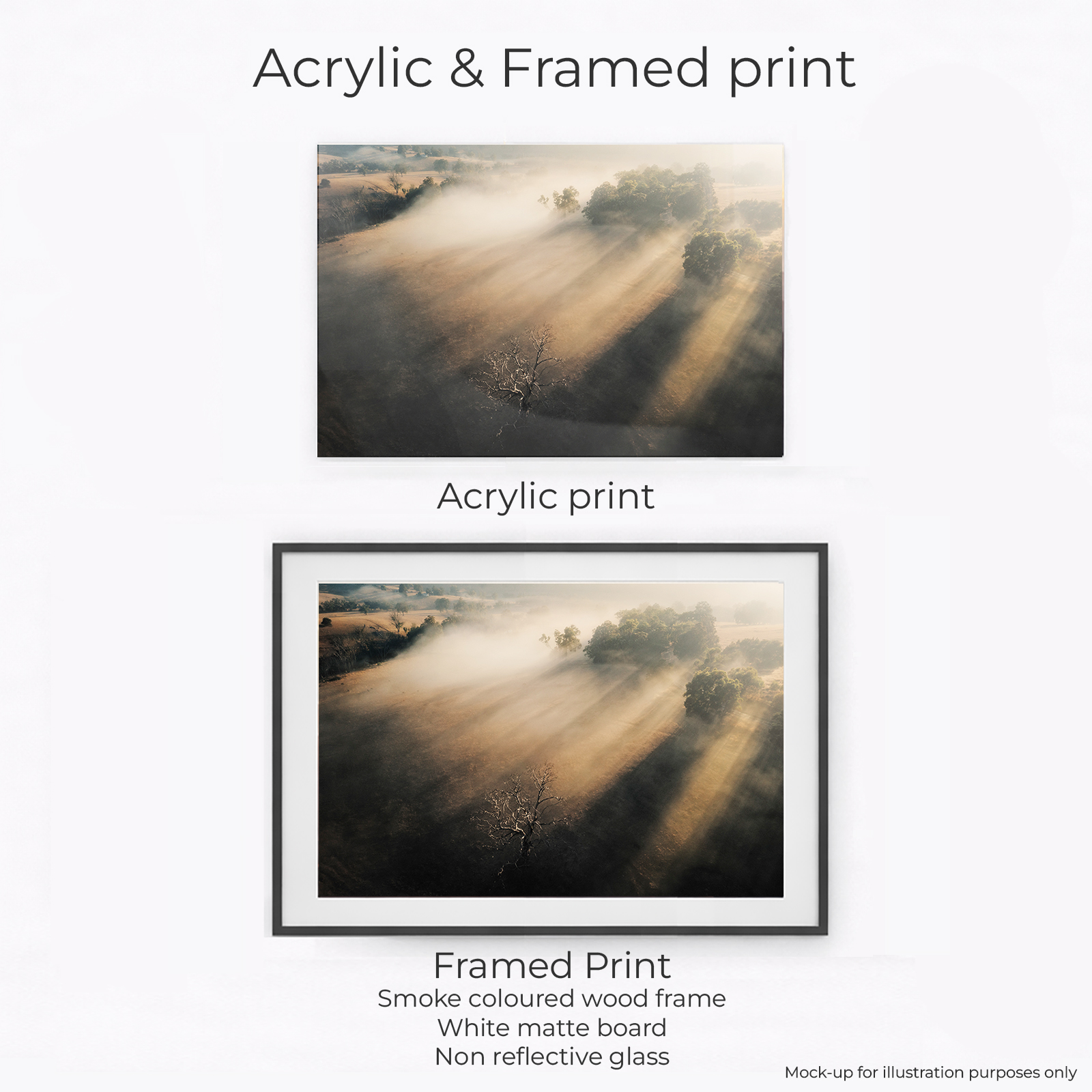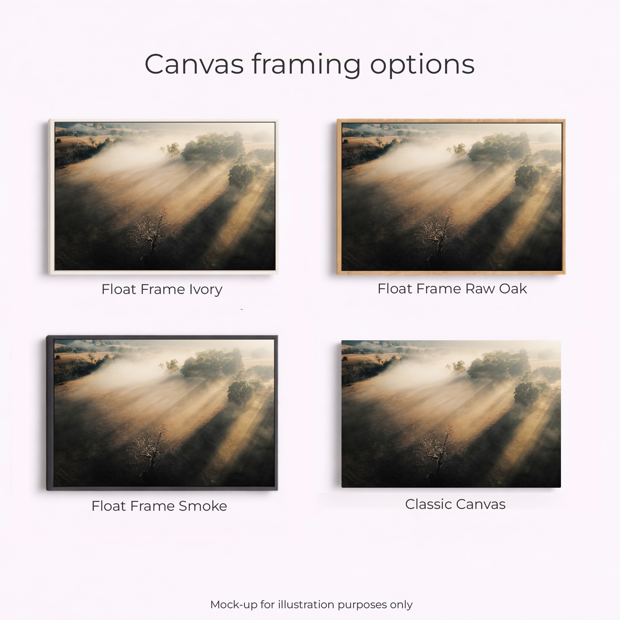 Acrylic Print, Canvas – Classic, Canvas – Float Framed – Raw Oak Colour, Canvas – Float Framed – Smoke Colour, Framed – Printing and Framing with Matboard, Paper Print – Cotton Rag, Paper Print – Matte Archival, Paper Print – Semi Gloss Luster