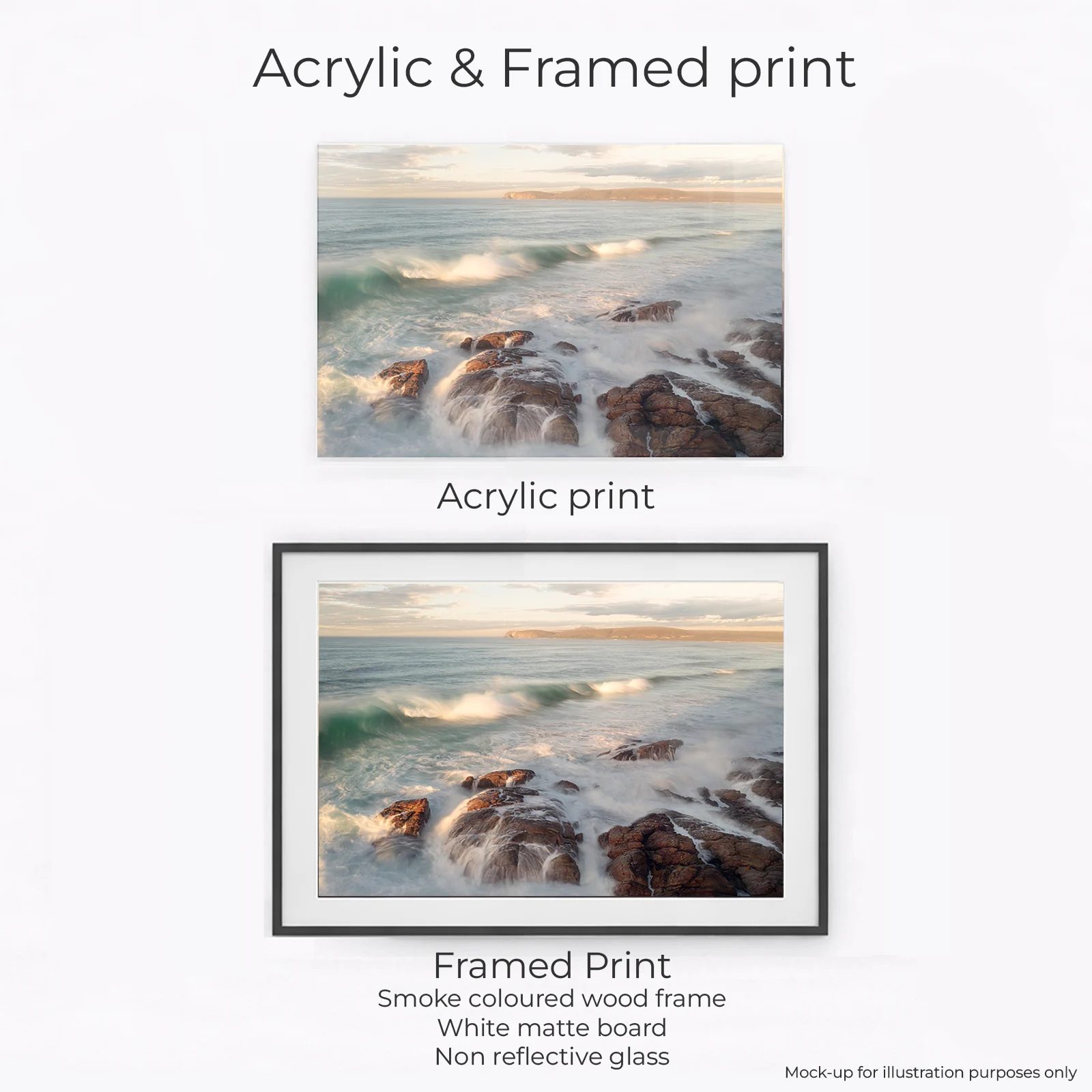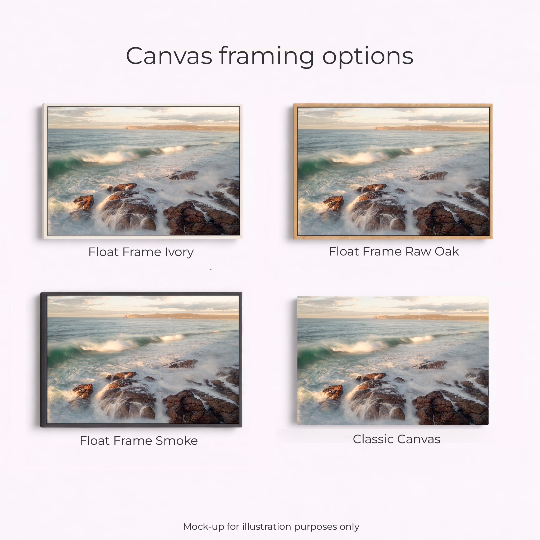 Acrylic Print, Canvas – Classic, Canvas – Float Framed – Raw Oak Colour, Canvas – Float Framed – Smoke Colour, Framed – Printing and Framing with Matboard, Paper Print – Cotton Rag, Paper Print – Matte Archival, Paper Print – Semi Gloss Luster