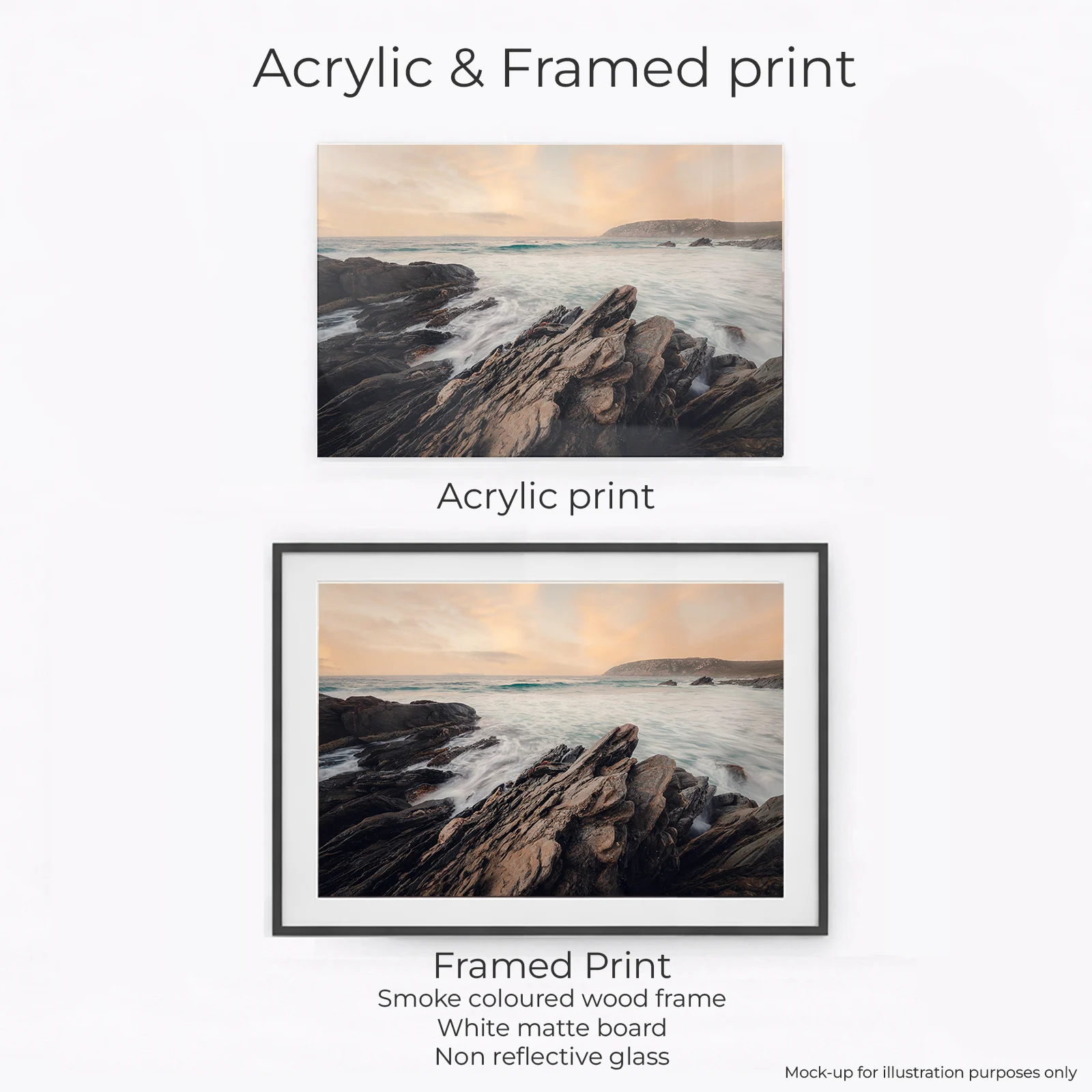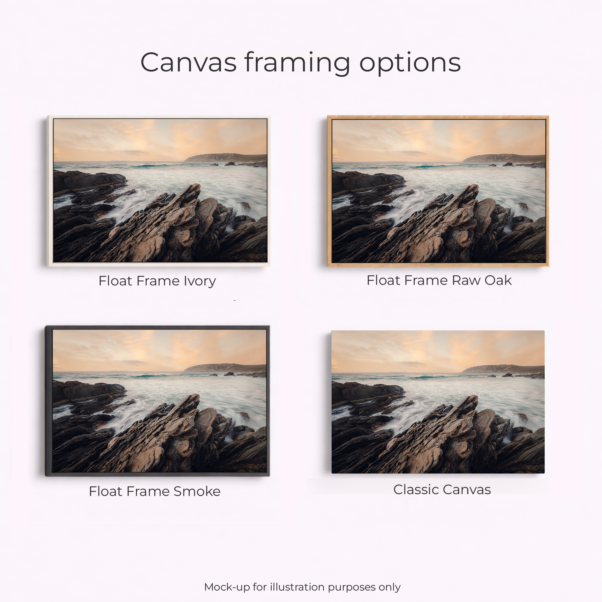 Acrylic Print, Canvas – Classic, Canvas – Float Framed – Raw Oak Colour, Canvas – Float Framed – Smoke Colour, Framed – Printing and Framing with Matboard, Paper Print – Cotton Rag, Paper Print – Matte Archival, Paper Print – Semi Gloss Luster