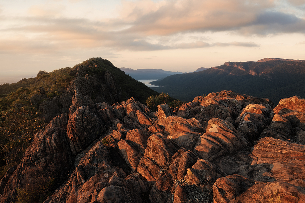 Boronia Peak is a rugged summit situated in the Mount William Range of Victoria’s Grampians National Park (Gariwerd). It is known for offering a quieter, less-crowded alternative to the popular Wonderland Range. The peak is accessible via a 6.6-kilometer return hike that begins near Halls Gap. The trail is steep and ends in an easy rock scramble to the top of the peak. The views here are some of the best in the Northern Grampians. You can see not only down over Lake Bellfield and the Wonderland Ranges, but East over the flat farmland towards Lake Fyans, Ararat and Stawell.