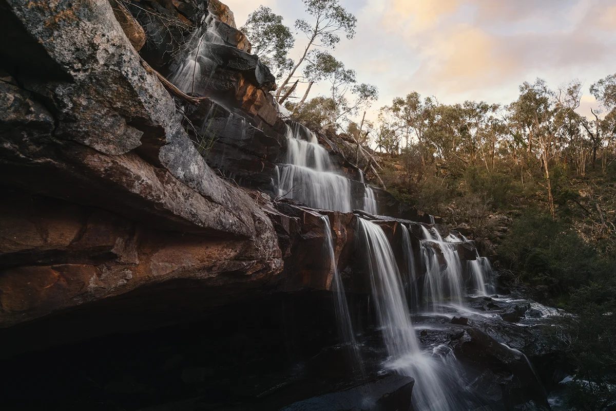 Burrong Falls in the Grampians is a lesser known waterfall. After a short walk, it is a peaceful spot to sit and take in the scenery. Surrounded by greenery, the falls cascade down multiple tiers in to a small pool.