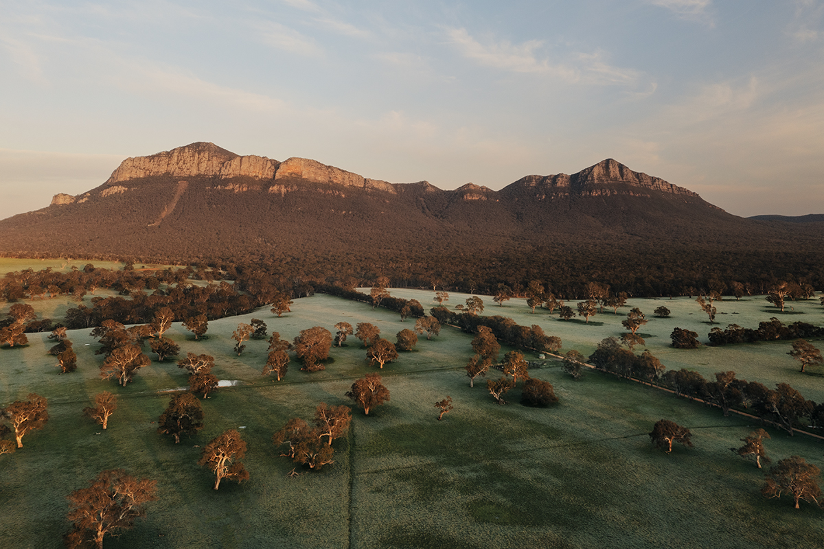 Sunrise from the rural area of Dunkeld, East of Mount Abrupt was the perfect spot to watch the sunrise. With Mount Abrupt and Signal Peak rising sharply above the fields, catching the warm sunrise glow. Mount Abrupt and Signal Peak are two striking landmarks at the southern end of the Grampians. Mount Abrupt is known for its steep, triangular profile and rugged cliffs, while Signal Peak rises nearby with a more pointed summit.