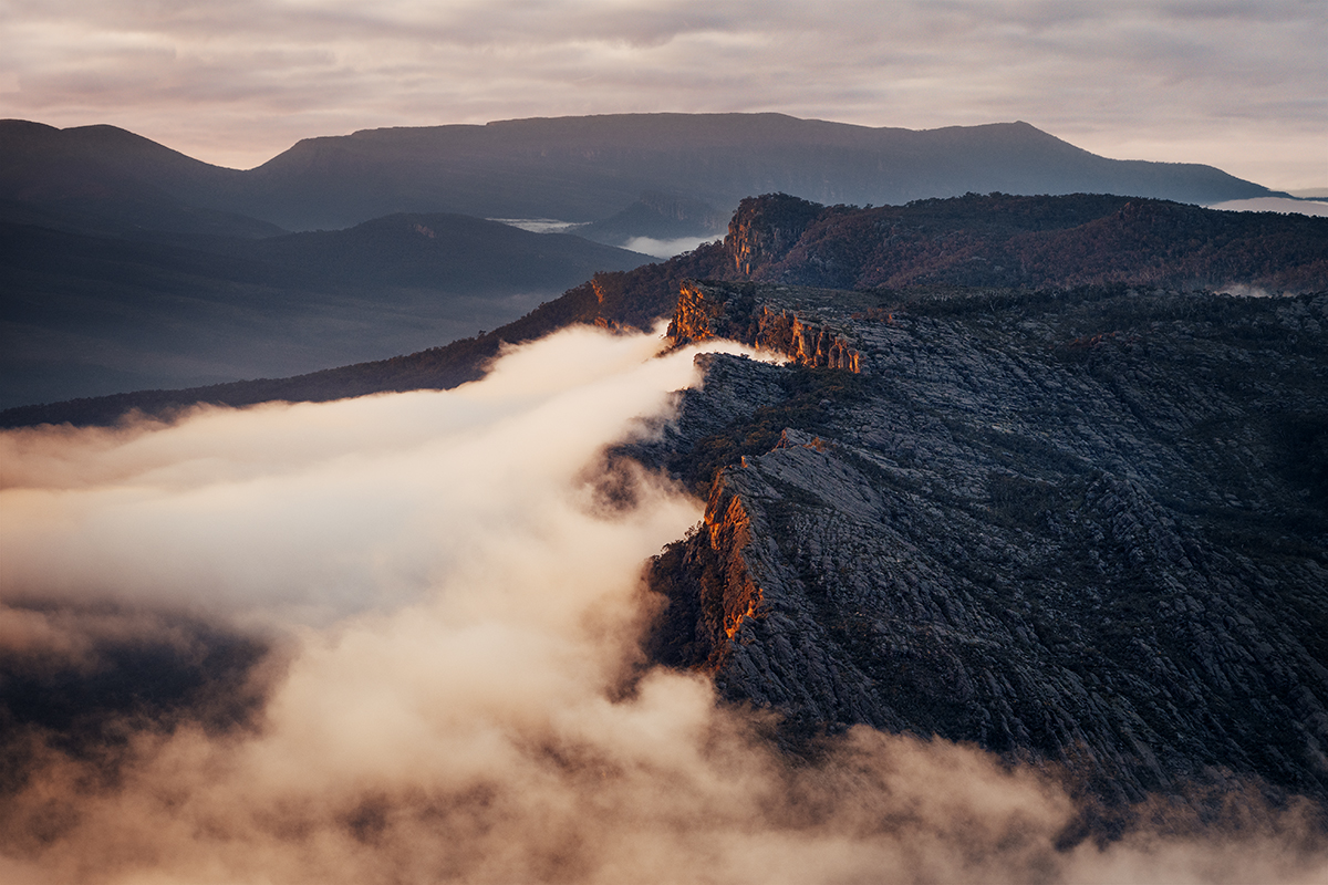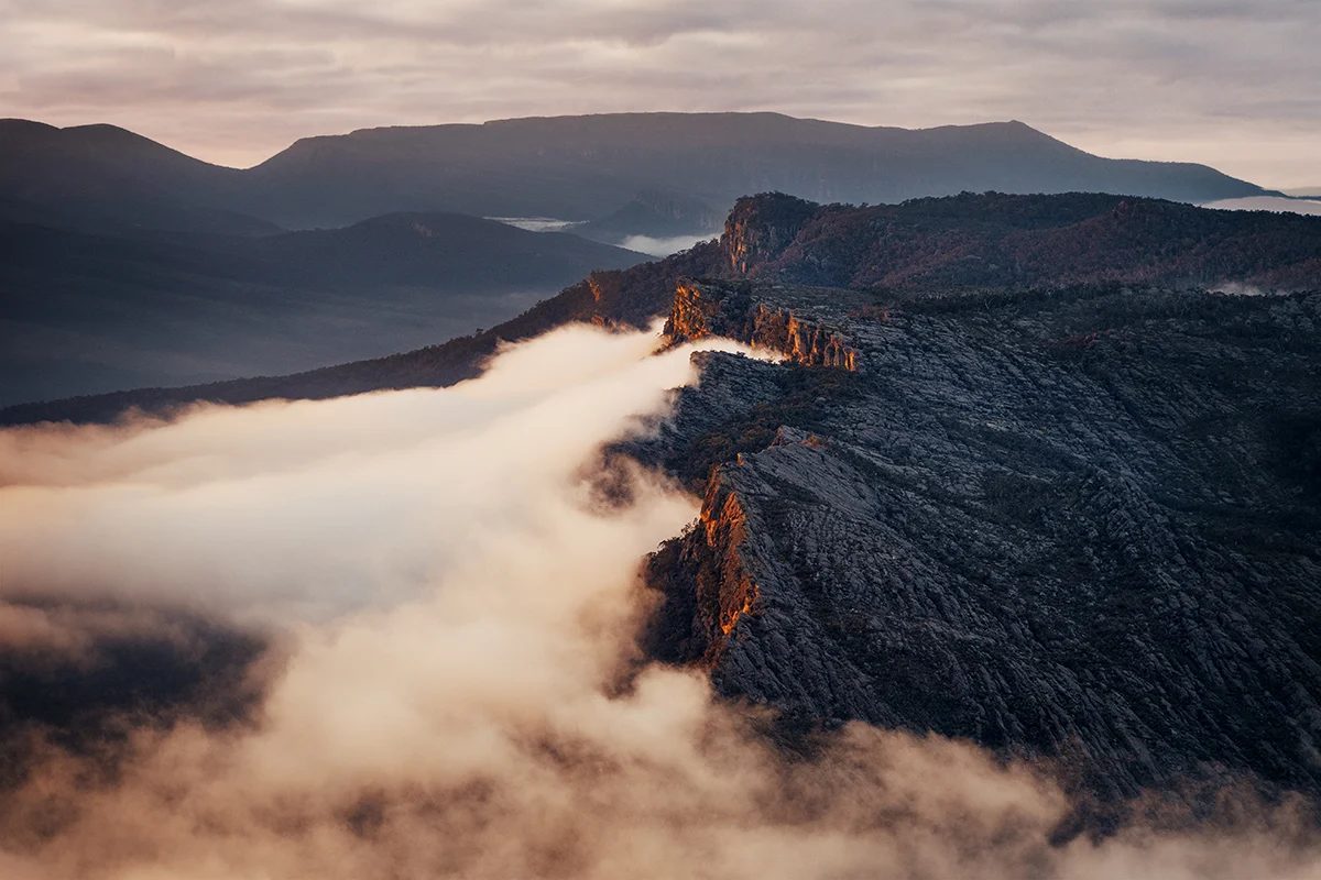 A dramatic sunrise over Halls Gap. Low clouds filled the valley, shrouding the town from view while the cliff faces caught the first light and glowed like molten lava. The whole landscape felt unreal, shifting from soft mist to fiery orange in a matter of minutes.