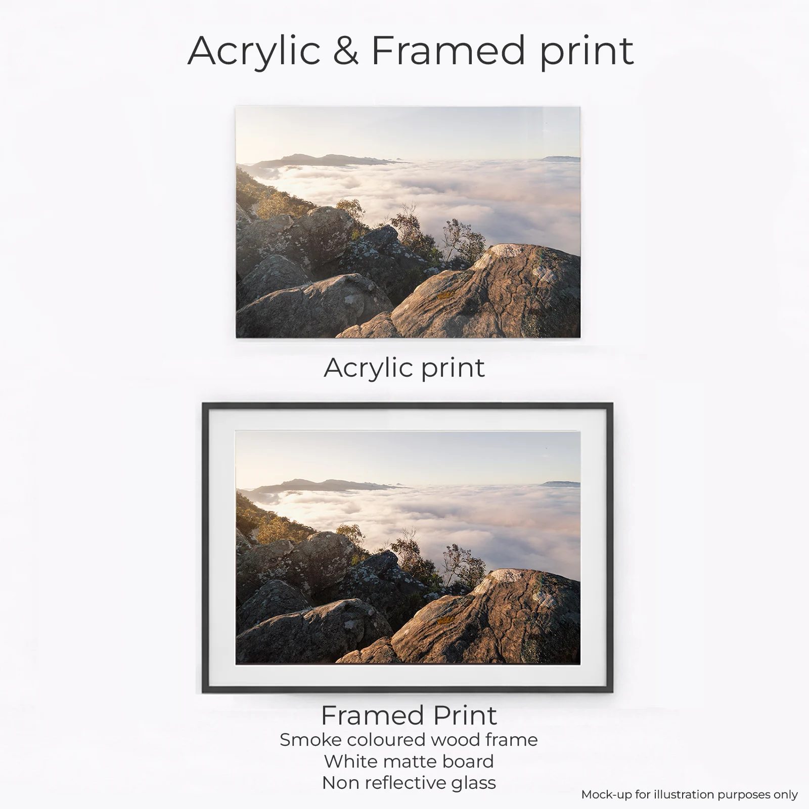 Sunrise from Reed Lookout putting on a special show. The entire valley and mountain ranges were wrapped in a thick blanket of low cloud, with just the peaks drifting through like islands. Then the sun broke through the top layer, casting soft golden light across the scene — a calm, surreal moment that felt completely otherworldly.
