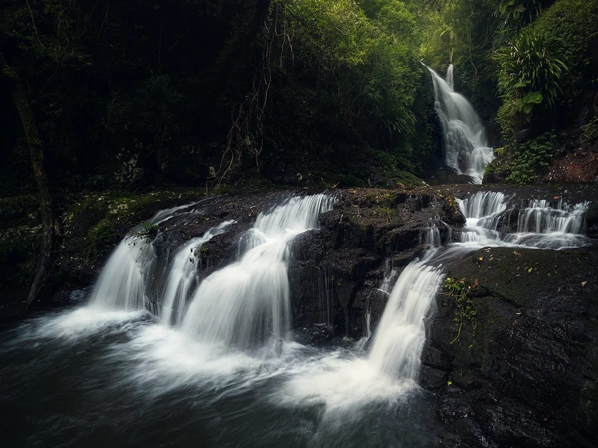 Lamington National Park’s most well known and most photographed waterfall. Two tiers fall in to a pool big enough for swimming. The track starts from O’Reilly’s Rainforest Retreat in the Green Patch section of Lamington National Park. It is a fairly straight forward 7km walk to go directly to the falls and back. Although it is commonly combined with the Box forest circuit (10.5 kms return) or the Toolona circuit (17km loop) There are so many beautiful waterfalls in the area to explore, and endless combination of tracks and lookouts.