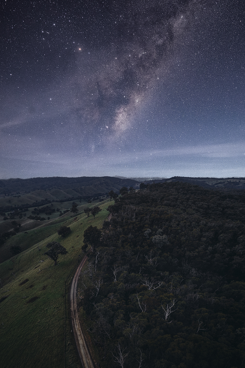 A quiet back-road in Murrindindi Shire winds between rolling green hills and shadowy bushland, leading your eye straight into a sky dusted with the Milky Way. Just north of Melbourne yet a world away from the city glow. You don’t have to stray far from Melbourne for awesome rural views.