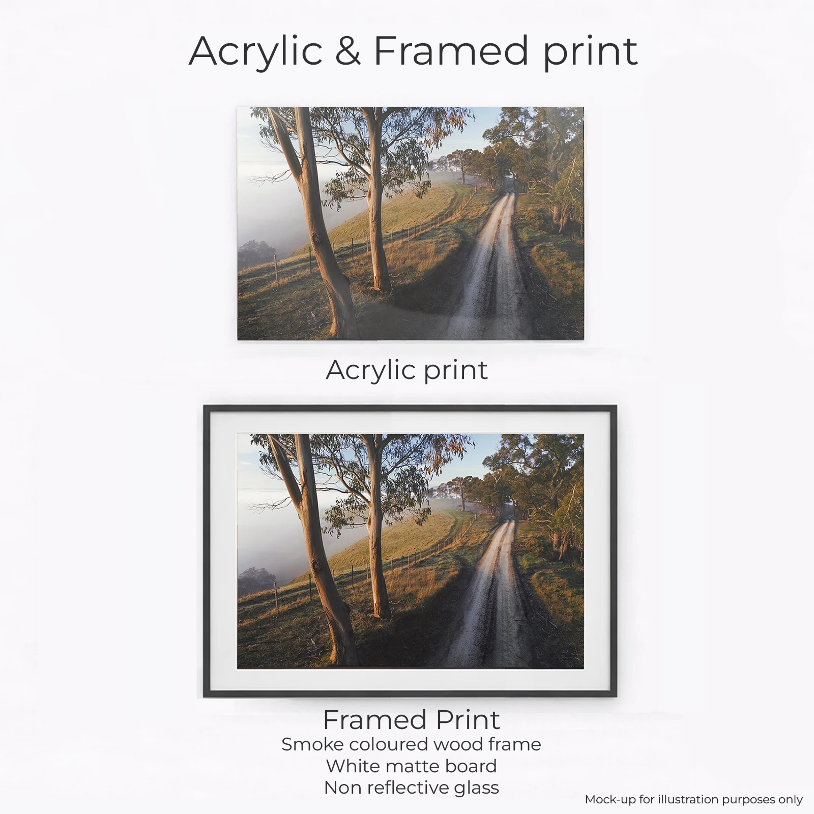 A quiet hilltop dirt road in the Murrindindi Shire, surrounded by rolling hills and early-morning stillness. The sun rises over a blanket of thick fog, softening the landscape and lighting the countryside in warm gold. You don’t have to stray far from Melbourne to get amazing rural views.