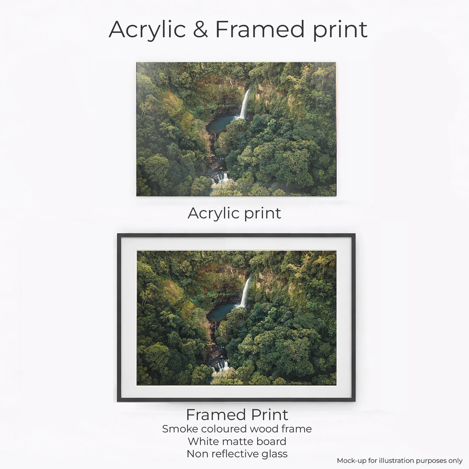 This print captures Nandroya Falls, hidden deep in the rainforest south of Cairns. A tall, narrow cascade drops into a dark volcanic pool, surrounded by dense tropical canopy. The falls sit within Wooroonooran National Park, part of the Wet Tropics World Heritage Area. The landscape here is ancient. Basalt cliffs, thick moss, and layered rainforest shaped by constant rainfall. Reaching Nandroya Falls requires a moderate walk through humid forest and hilly terrain. Compared to some of the other waterfall walks in the area though, it is one of the easier ones, with not too much total elevation gain. The area is quiet, moody, and untouched.