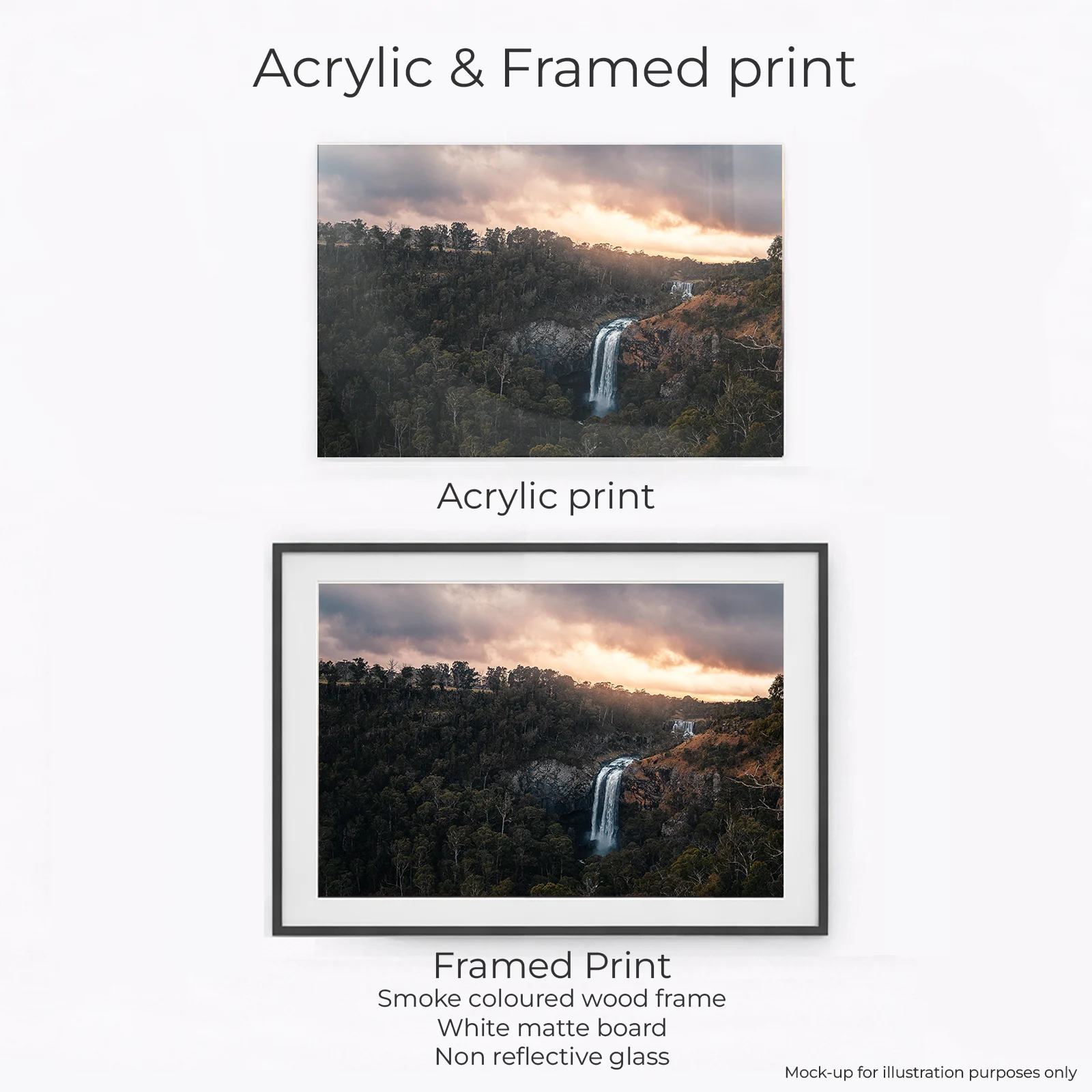 Ebor Falls is a dramatic two-tier waterfall on the edge of the New England escarpment, where the Guy Fawkes River drops into a deep, rugged gorge. The lookouts are an easy walk, and after rain the falls thunder and throw mist into the cold air like sea spray in the mountains. On clearer days you can see the layers of forested valley stretching out below. A must see stop on the Waterfall Way, one of NSW’s best road trips.