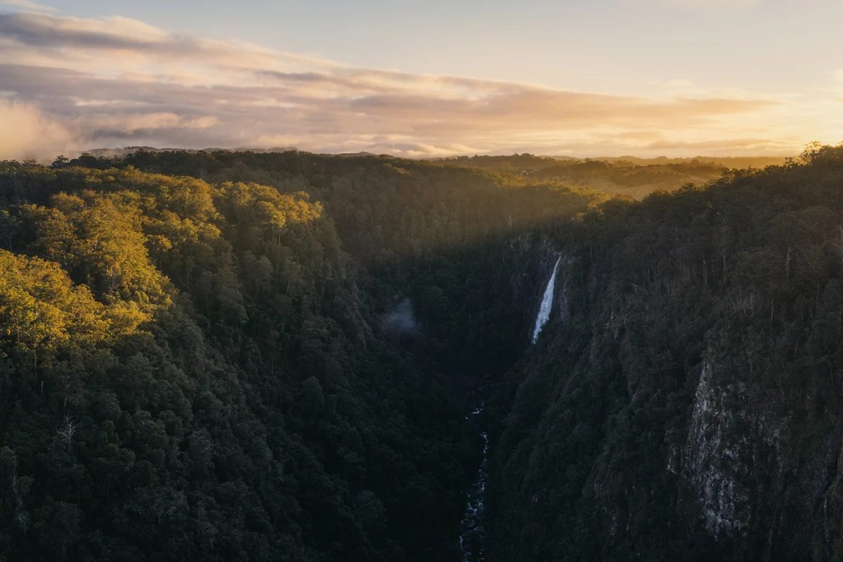 Ellenborough Falls sits about 85 km inland from Port Macquarie (typically around 1 to 1.5 hours’ drive). It’s surprisingly easy to miss because it’s not on the main coastal highway route. You have to intentionally detour toward Elands rather than “stumble across it” on a road trip. The final approach can also put people off, with winding backroads and often a long gravel section that makes it feel more remote than it actually is. Many visitors never realise a huge single-drop waterfall is sitting right there in the hinterland. It certainly surprised me in a good way.