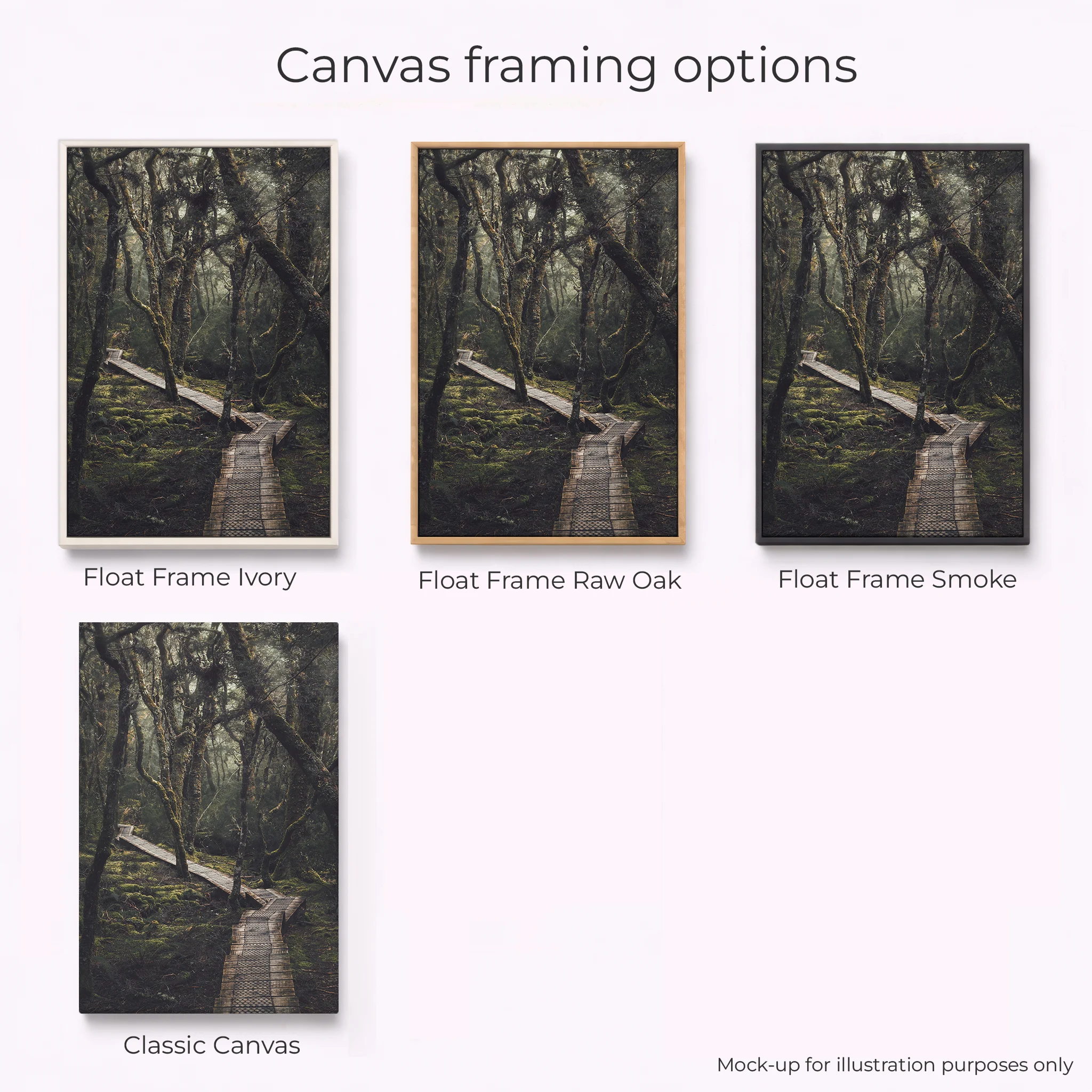 Acrylic Print, Canvas – Classic, Canvas – Float Framed – Raw Oak Colour, Canvas – Float Framed – Smoke Colour, Framed – Printing and Framing with Matboard, Paper Print – Cotton Rag, Paper Print – Matte Archival, Paper Print – Semi Gloss Luster